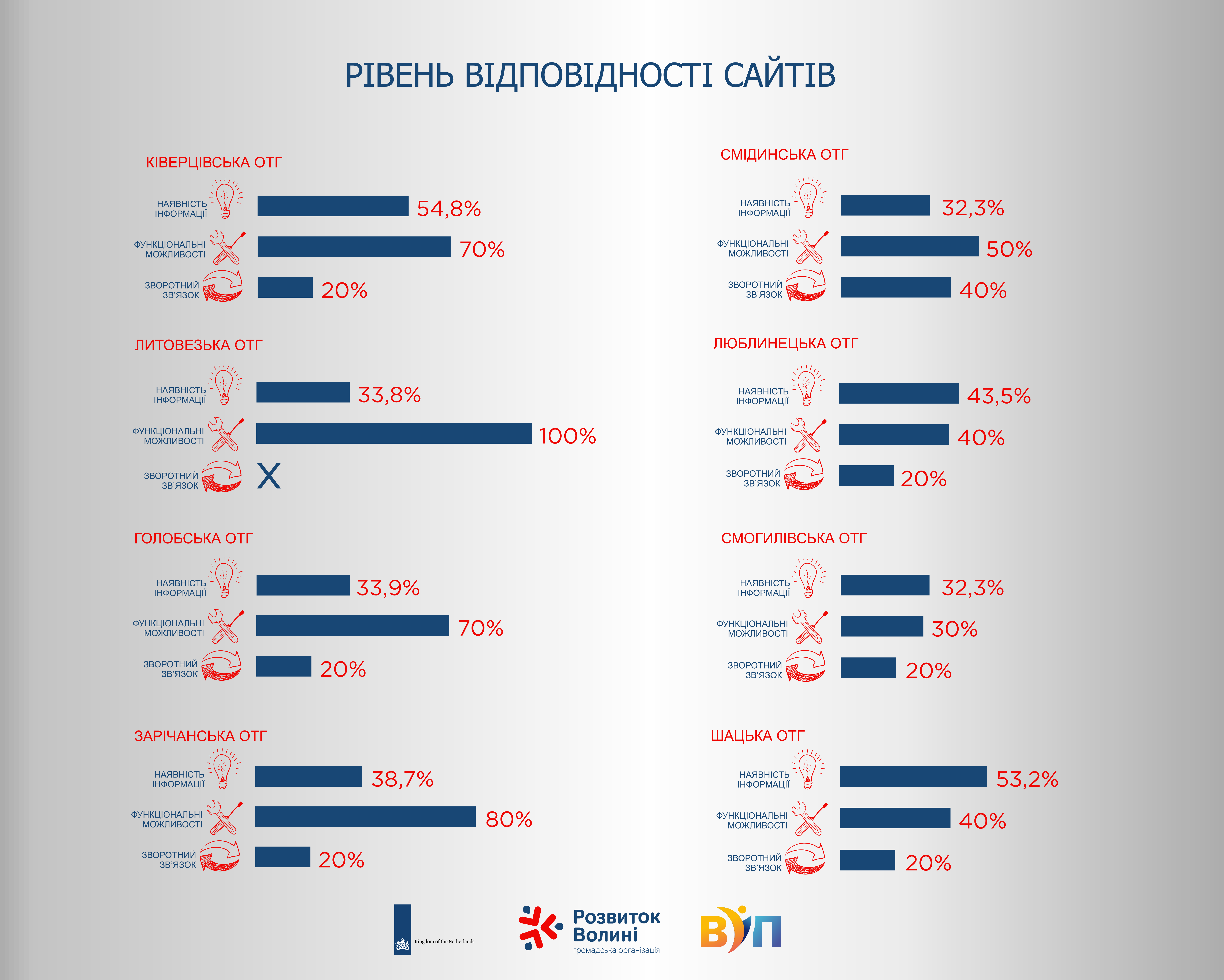 Інфографіка сайтів 8 громад Волині
