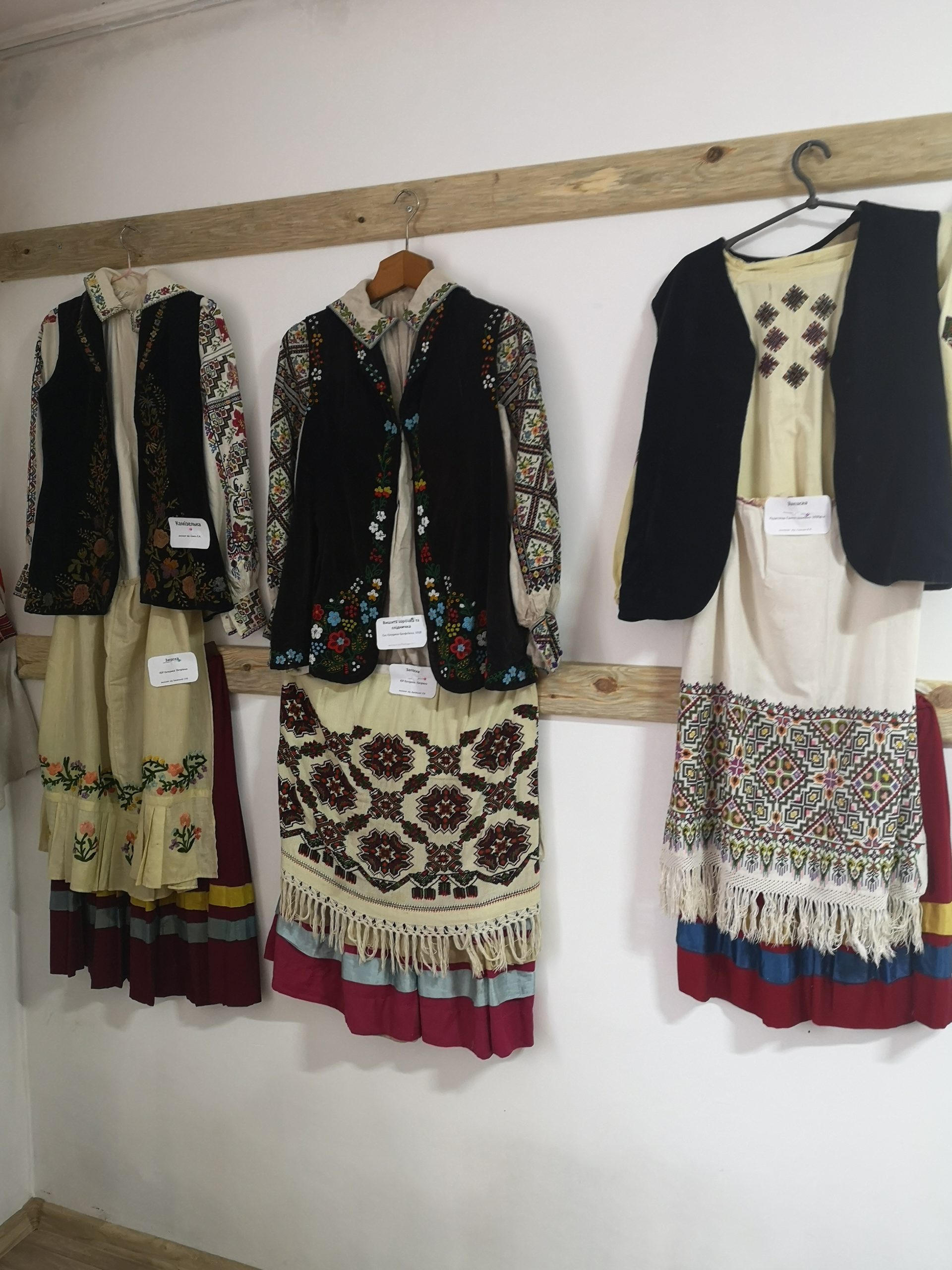 А ще хочу розповісти про населення, яке долучилось до нашої пошукової роботи. Люди не залишились байдужими до поповнення музею експонатами: самі несли, везли, телефонували з пропозиціями. Так музей поповнився багатьма експонатами. Тут і одяг, і рушники, починаючи з 1925 року. Велику цікавість несе одяг чоловіків та жінок 1912 року. Це робочі полотняні грубі сорочки, але є і святковий одяг. Вражає, що народ, який тяжко працював, мав час для творчості, адже предмети одягу, вжитку-це велика творчість. Вишиті камізельки, запаски, блузки та сорочки! А які спідниці! Маємо у музеї спідницю, що прекрасно збереглася від 1930 року.